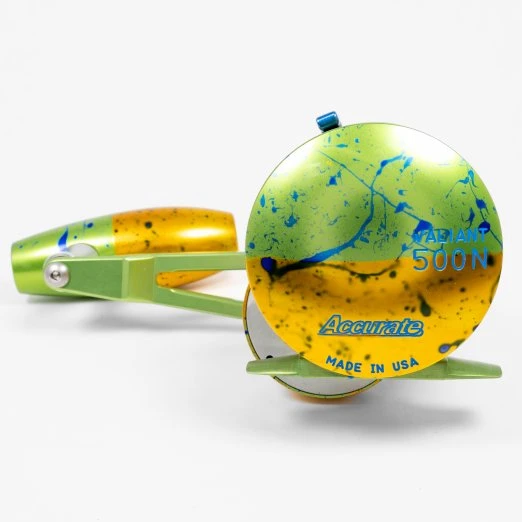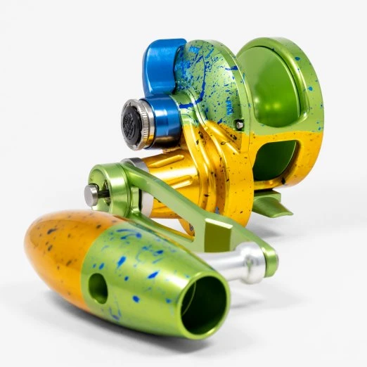 Accurate is now making a version of this reel that is specifically designed for slow pitch jigging. The BV2-500N-SPJ differs from the regular verison in that it has a longer handle with a very cool long offset aluminum knob, no clicker and it doesn’t come with a clamp set though you can purchse one if you need it. It weighs a bit more due to the large handle. These models are all silver.