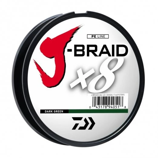 Daiwa J-Braid is available in sizes from 15-120 lb test. Choose from dark green and the multicolor. The multicolor line changes colors every 10 meters so you can know what depth you are at or how far you are casting.