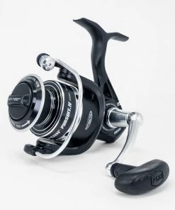Penn Pursuit IV Spinning Reels are available in six sizes. They can handle both mono and braided fishing lines. All models are black with silver accents.